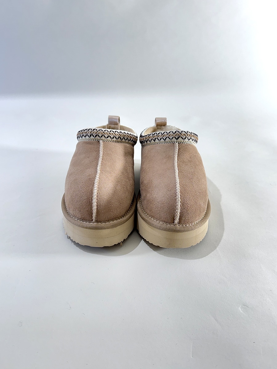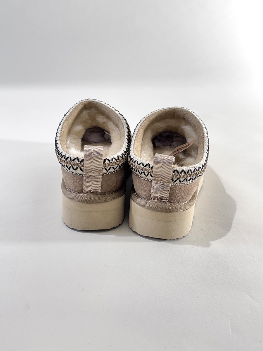 Mules in montone dal platform alto , ricami in contrasto