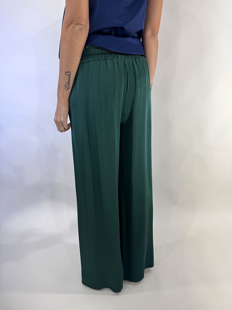tessuto lucido e fluido che vi segue nei movimenti con naturalezza. Gamba larga.