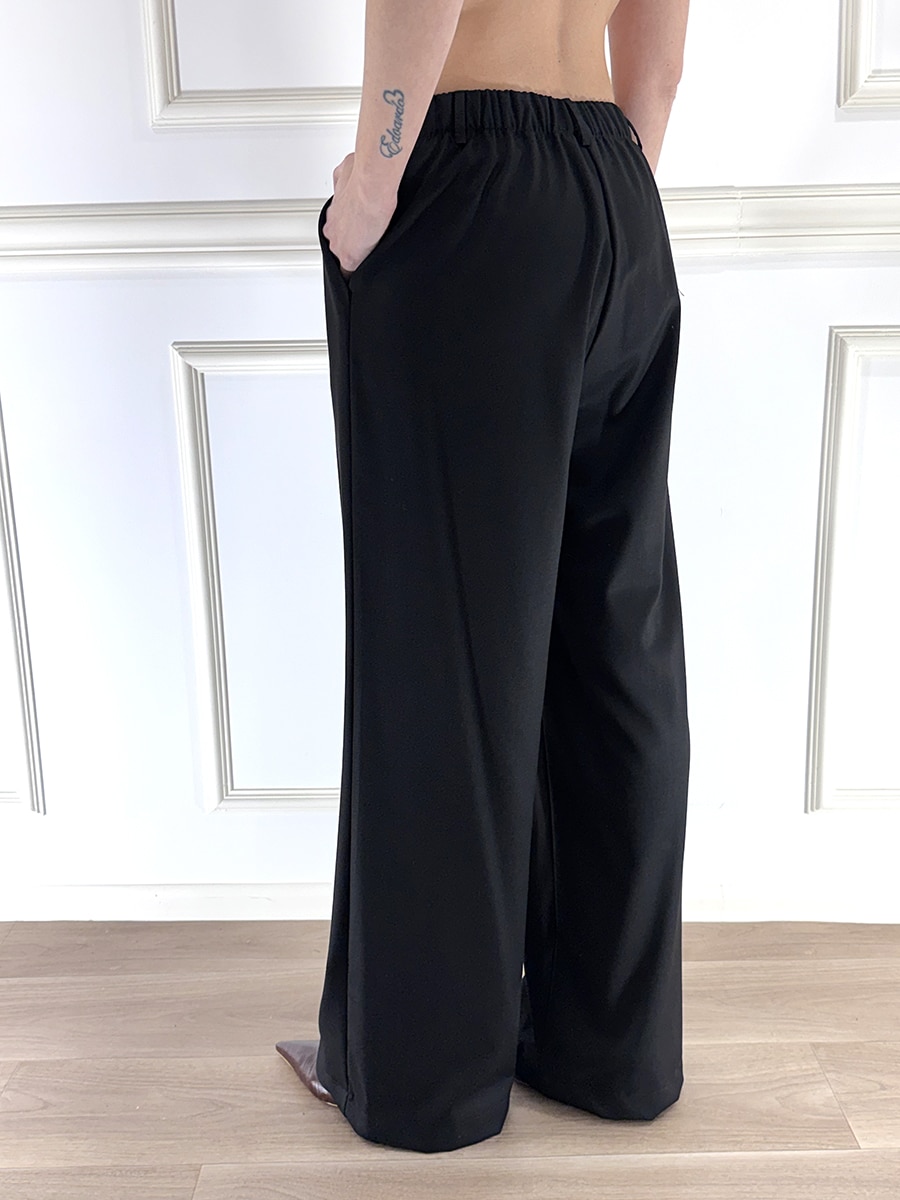 Pantalone nero , zip e bottone davanti con pences , elastico in vita dietro per il massimo comfort. Vita regolare. vestibilità comoda.