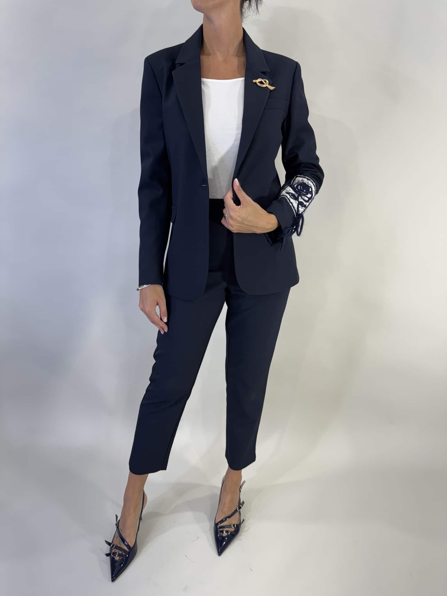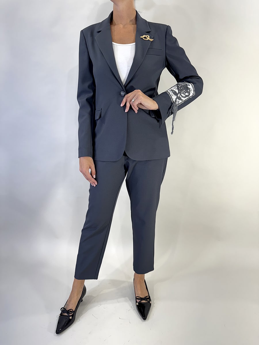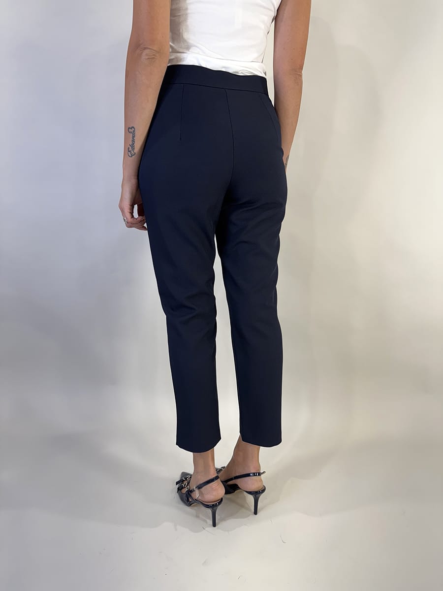Pantalone a sigaretta in tessuto stretch con zip laterale invisibile e linea pulita. Un modello essenziale e versatile, perfetto per look eleganti e da ufficio. Disponibile anche nella variante grigia.