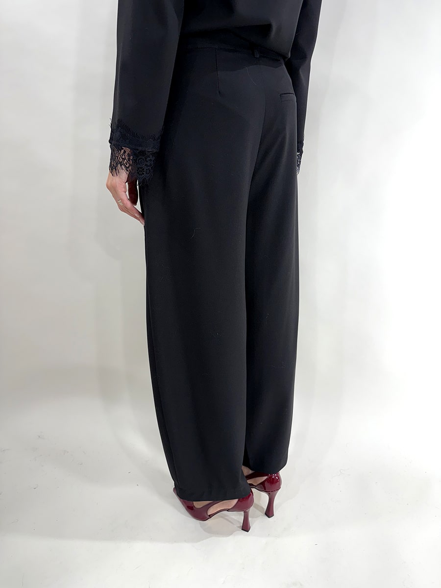 Pantalone ampio e sartoriale, dal taglio elegante, ma con un tocco contemporaneo.