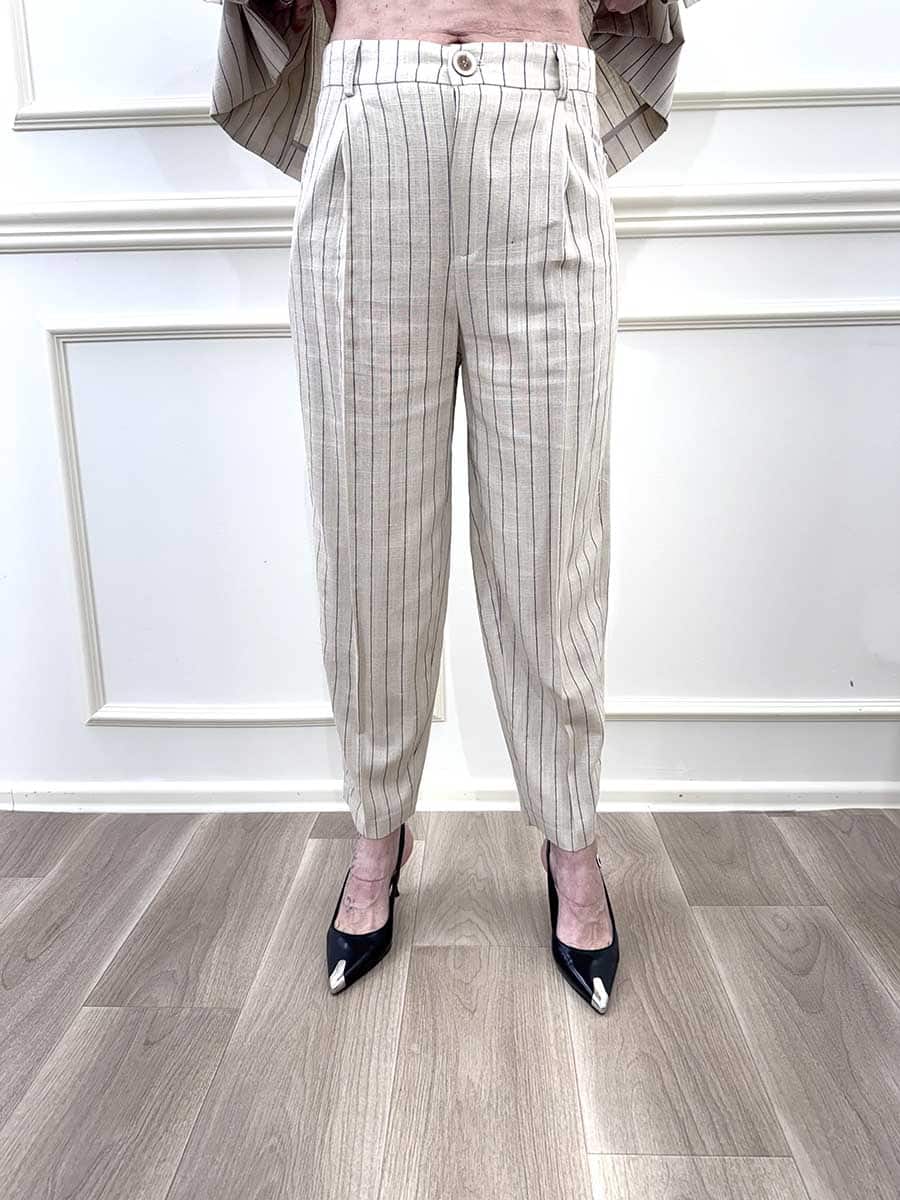 Pantalone a sigaretta, microgessatura , tasche laterali per un design più strutturato e pences sul davanti. .