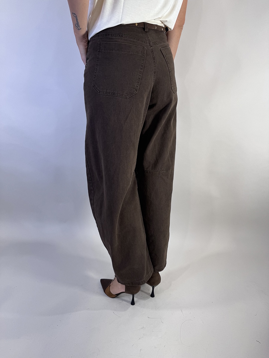 Pantalone in cotone con cintura in dotazione. zip e bottone per la chiusura , modello ferro di cavallo . capo versatile , elegante se abbinato a tacchi , casual con maglioncino o camicia.