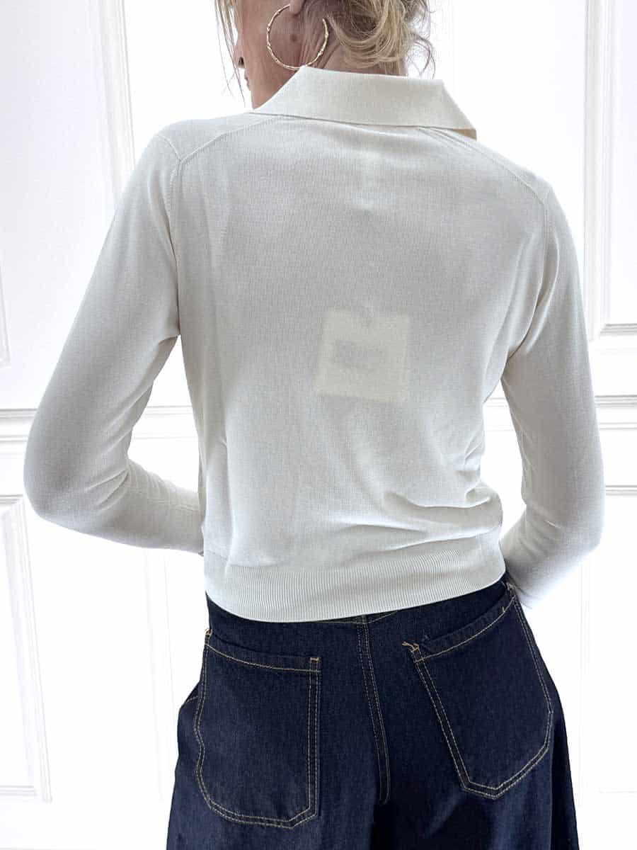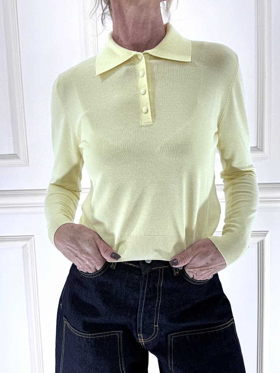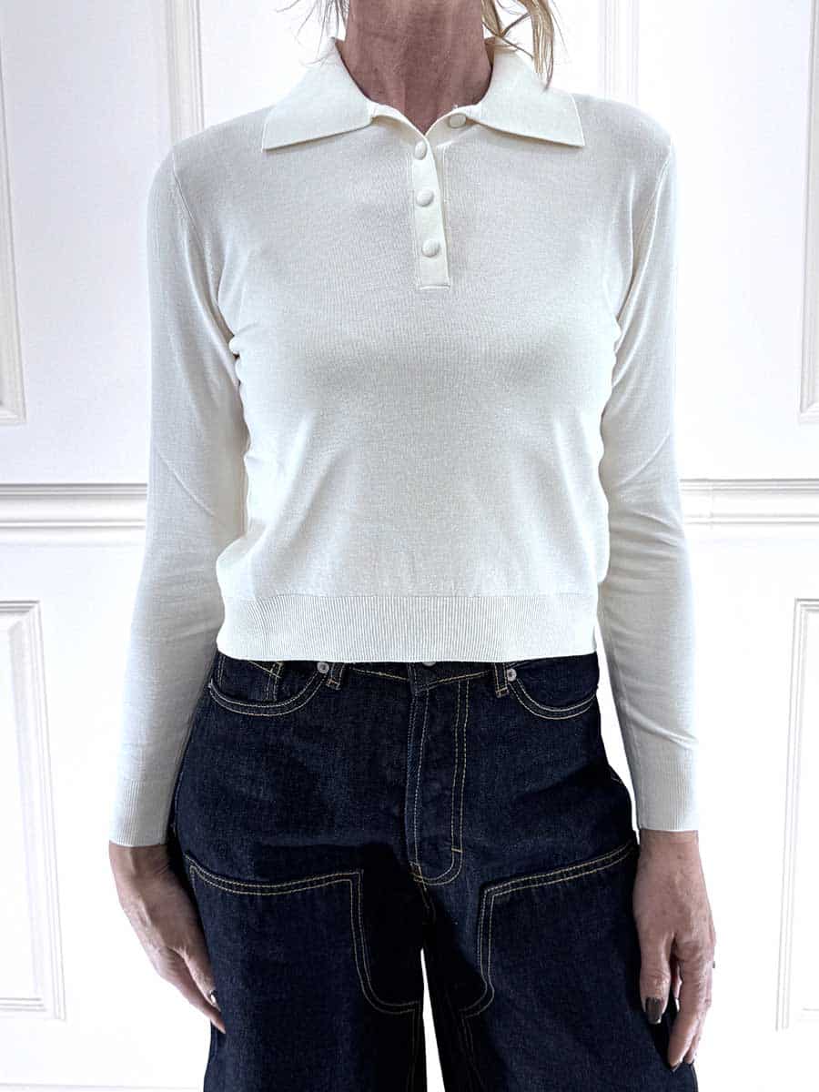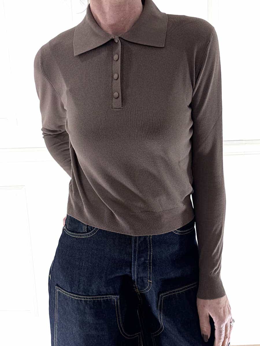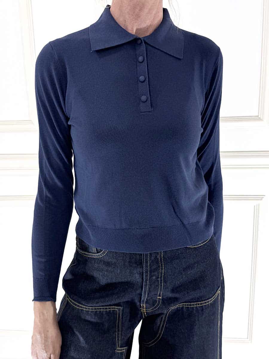 Polo in maglia con colletto e bottoncini davanti , manica lunga , vestibilità comoda.