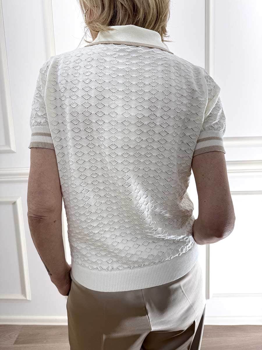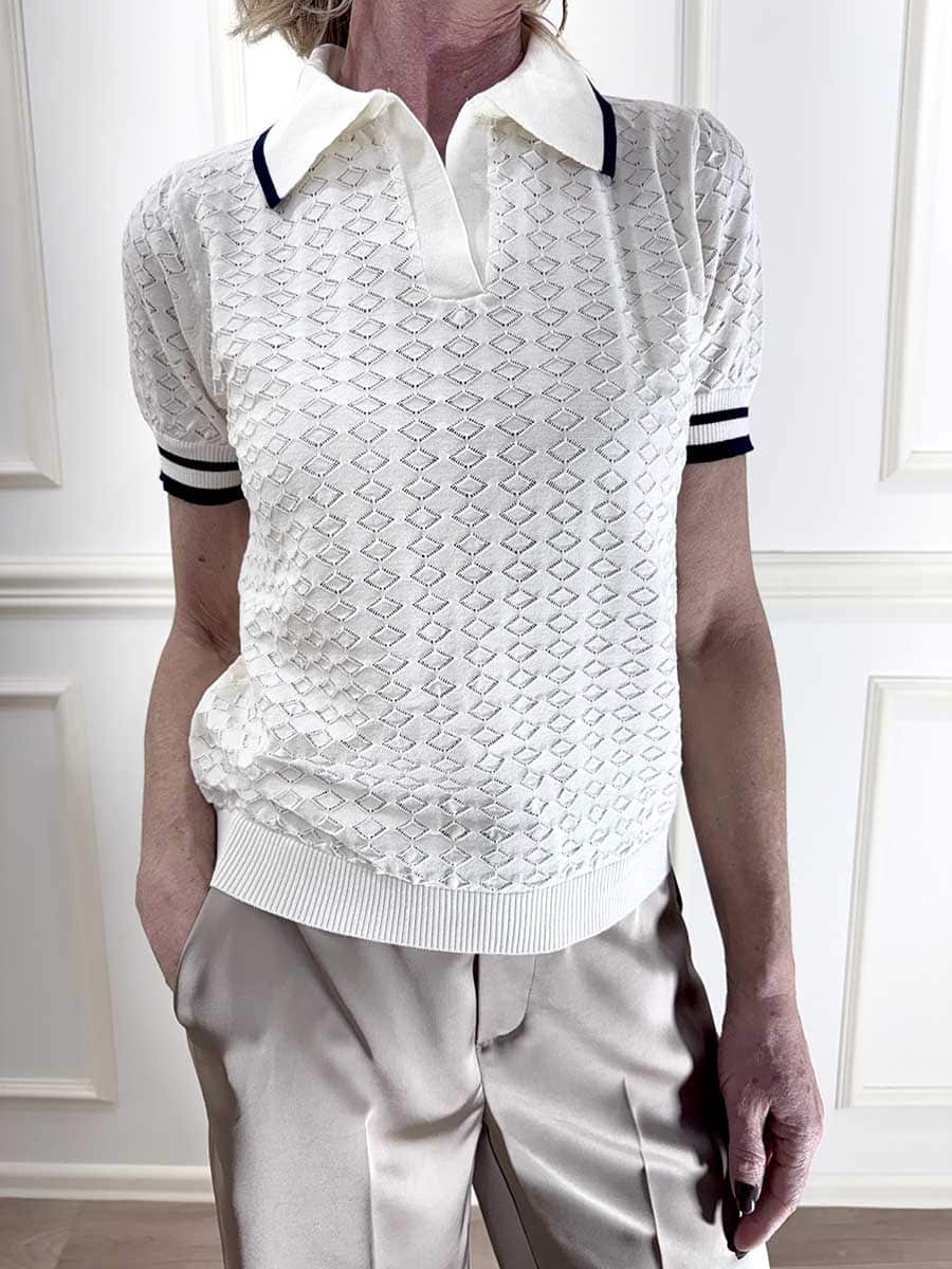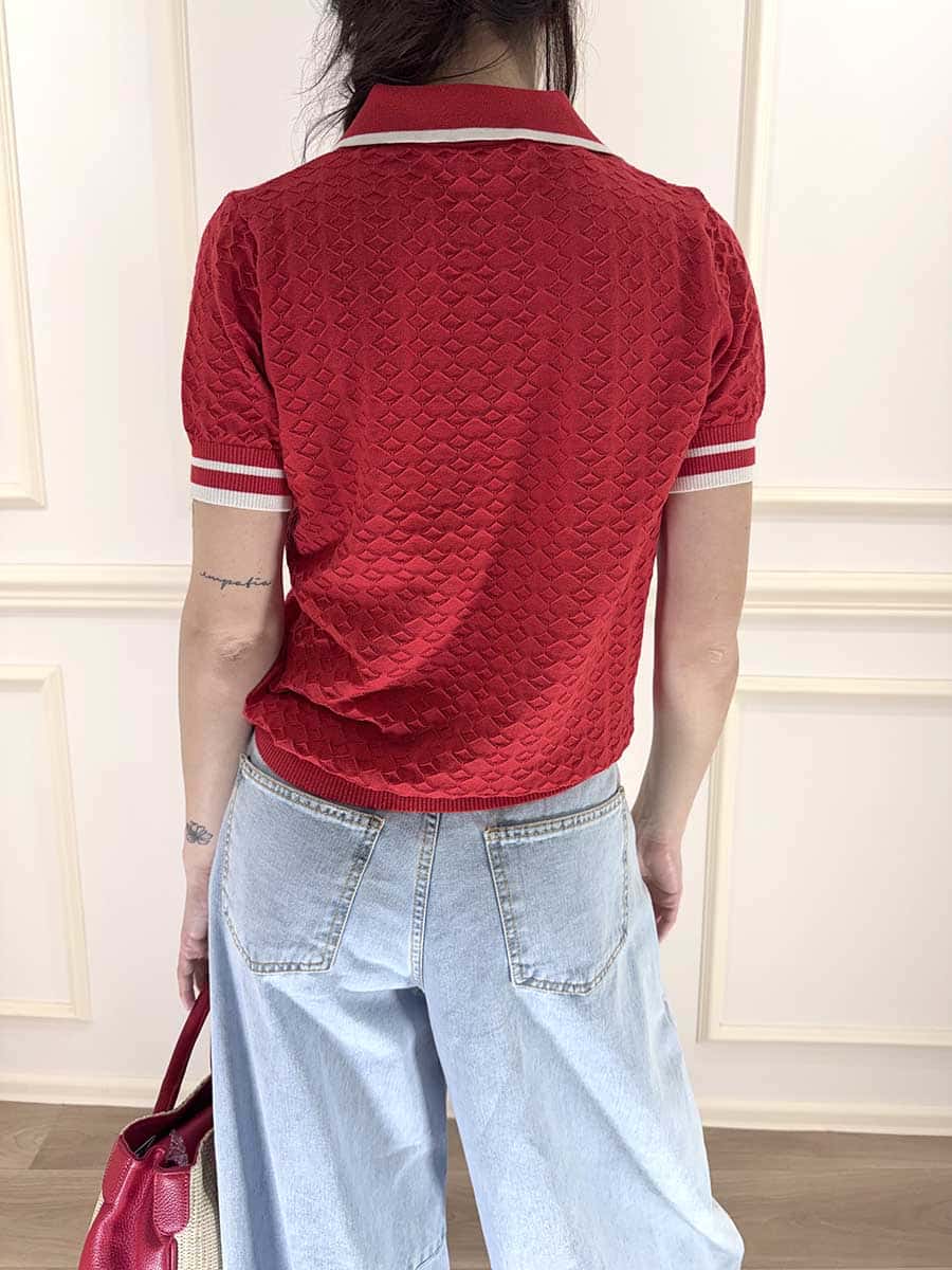 polo con profili in contrasto , tessuto elasticizzato con lavorazione in rilievo.