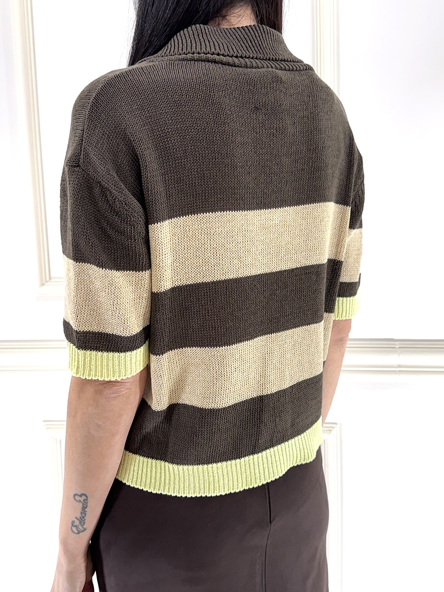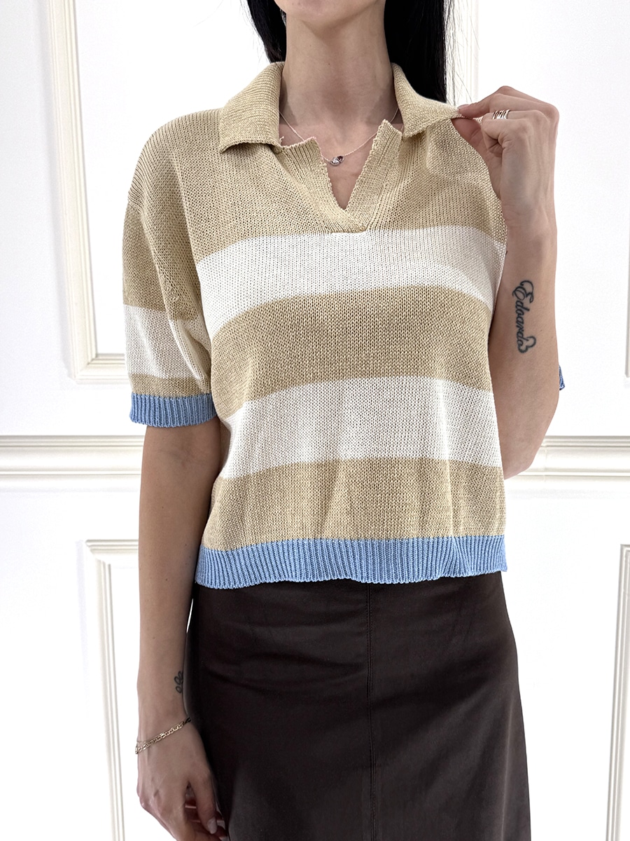 Polo con colletto rigata mezza manica, vestibilità comoda.