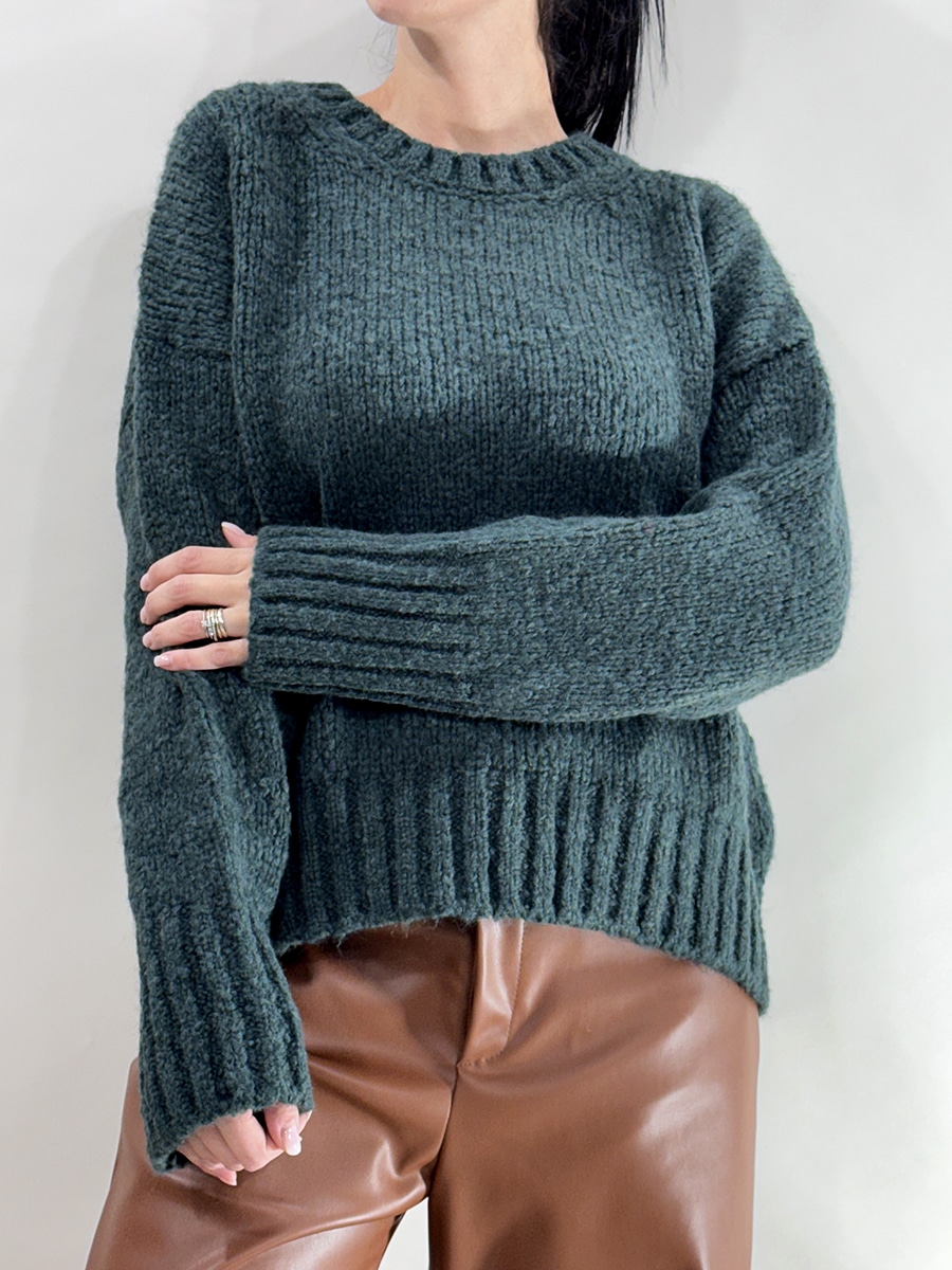 Pull girocollo con profili a coste, modello morbido dal fit non asciutto , capo versatile adatto sia per look sportivi che casual.