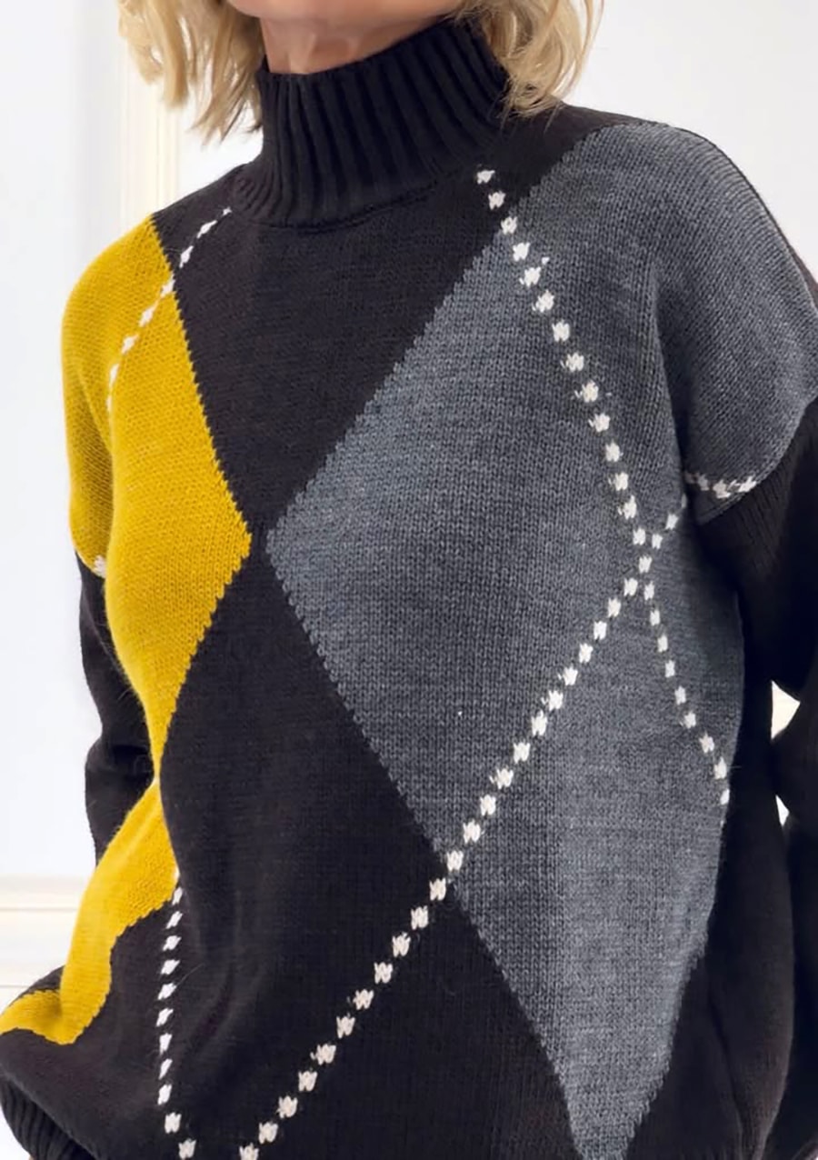 Pull rombi , collo a cratere, fit non asciutto.