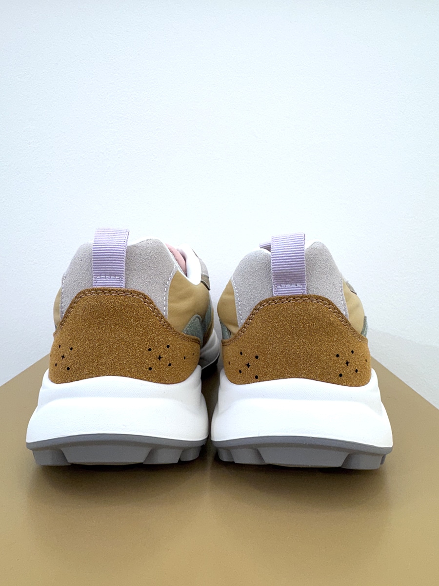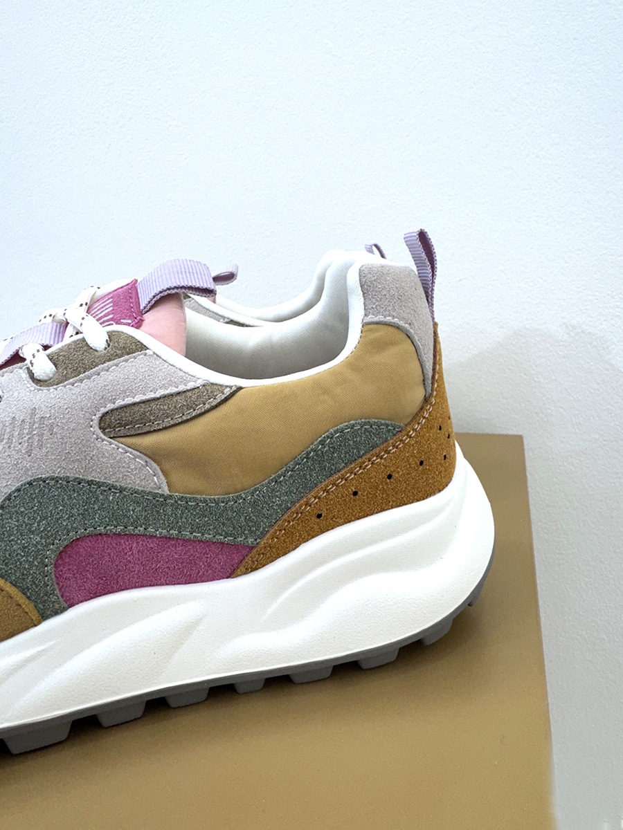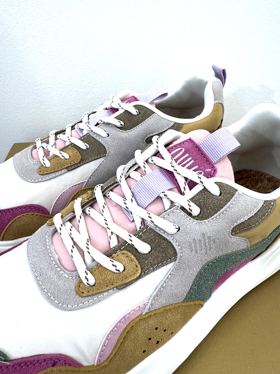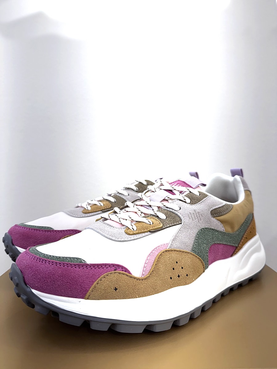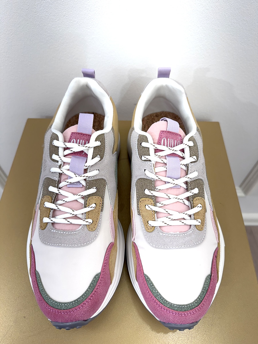 Sneakers in tessuto ed ecopelle multicolor, suola 4 cm.