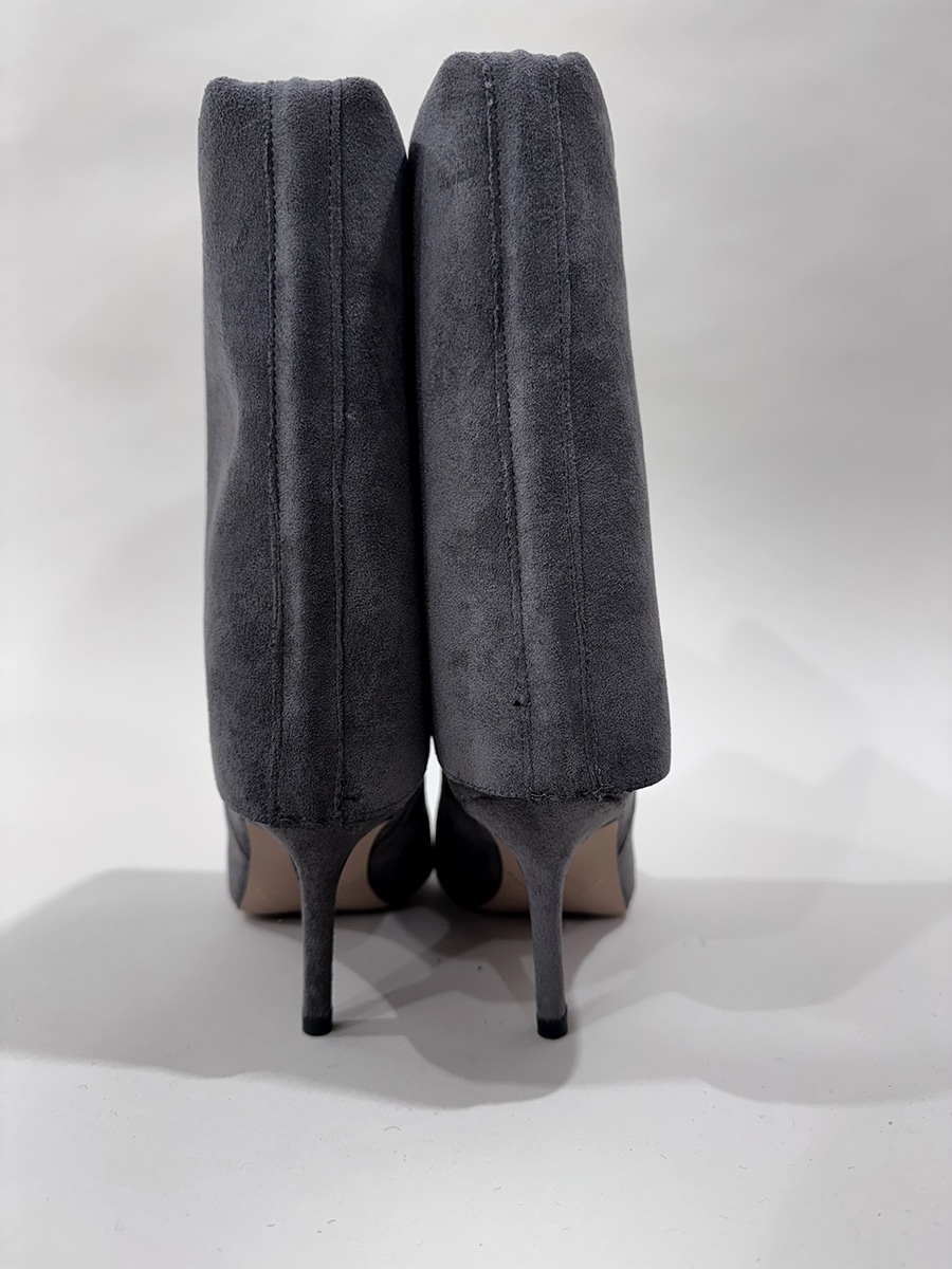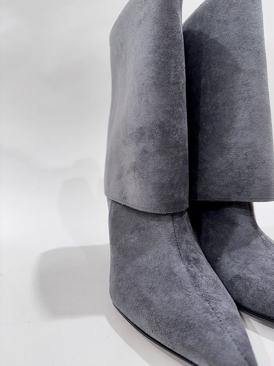 Stivale scamosciato colore grigio , gambale con risvolto , posbbilitĂ di alzare il gambale o arricciarlo.