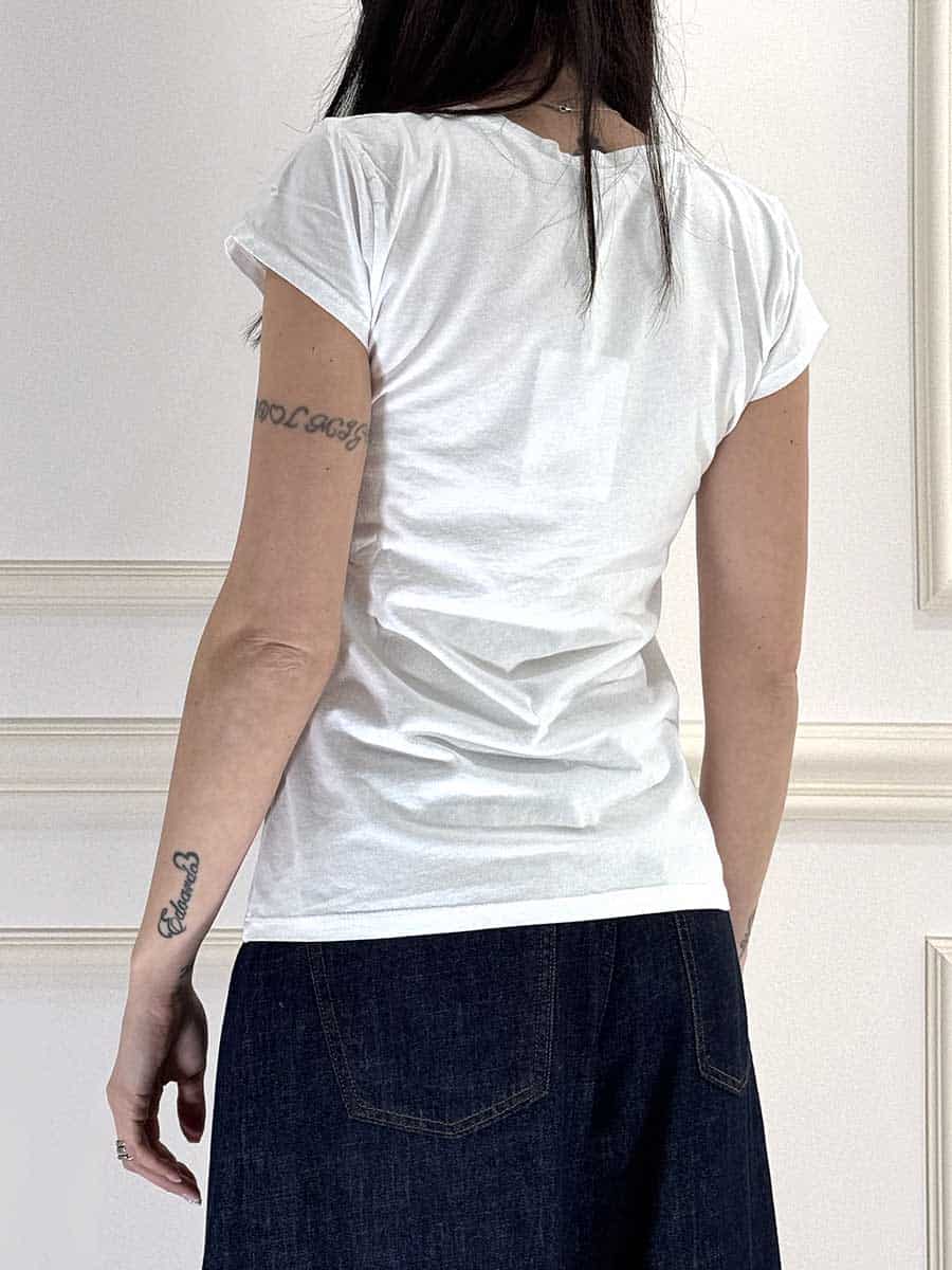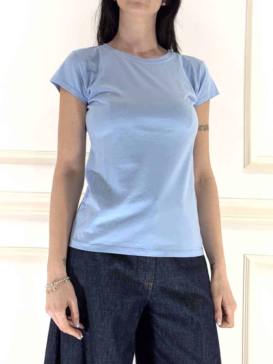T-shirt basica in cotone girocollo e giromanica , vestibilità regolare. Linea pulita , capo versatile.