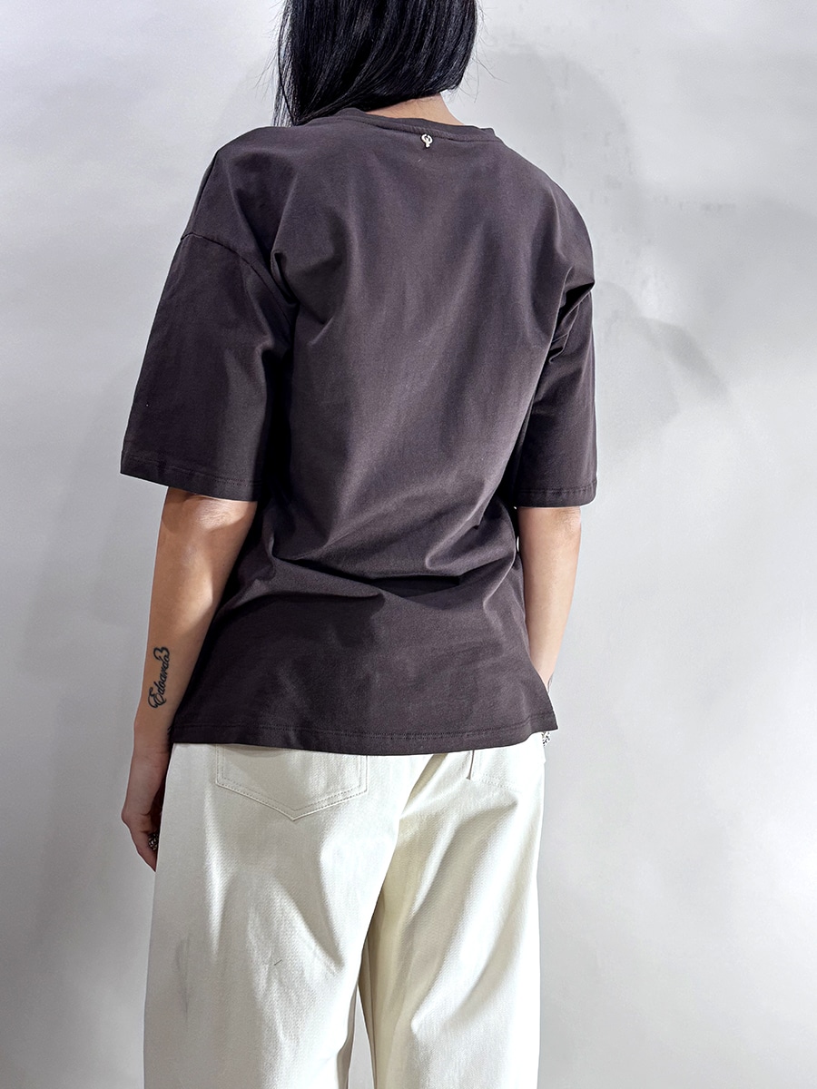 T-shirt in cotone modello over con stampa davanti su base moro , girocollo.
